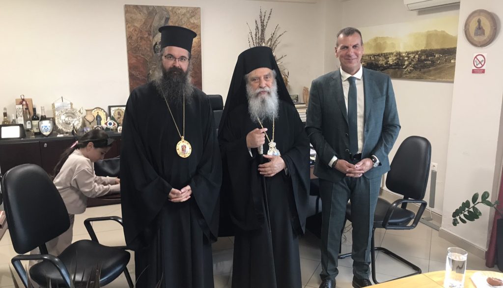 Τον Δήμαρχο επισκέφτηκαν στο γραφείο του στο Δημαρχείο, ο Σεβασμιώτατος Μητροπολίτης Μονεμβασίας & Σπάρτης, κ.κ. Ευστάθιος, συνοδευόμενος από τον θεοφιλέστατο Επίσκοπο Λακεδαιμονίας, κ. Θεόφιλο, οι οποίοι του μετέφεραν τις θερμές ευχές τους.