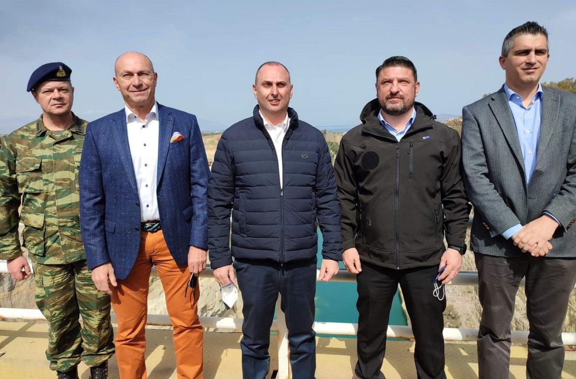 Παρουσία του Δημάρχου Λουτρακίου – Περαχώρας – Αγίων Θεοδώρων κ. Γεώργιου Αλκ. Γκιώνη πραγματοποιήθηκε, το πρωί της Τρίτης 5 Απριλίου 2022, επίσκεψη αυτοψίας για την παρακολούθηση της πορείας στα έργα αποκατάστασης των ζημιών στα πρανή της Διώρυγας Ισθμού από την πλευρά της Πελοποννήσου από τον Υφυπουργό Ανάπτυξης και Επενδύσεων κ. Χρίστο Δήμα, τον αρμόδιο Υφυπουργό Υποδομών κ. Γιώργο Καραγιάννη και τον Υφυπουργό Εθνικής Άμυνας κ. Νίκο Χαρδαλιά.