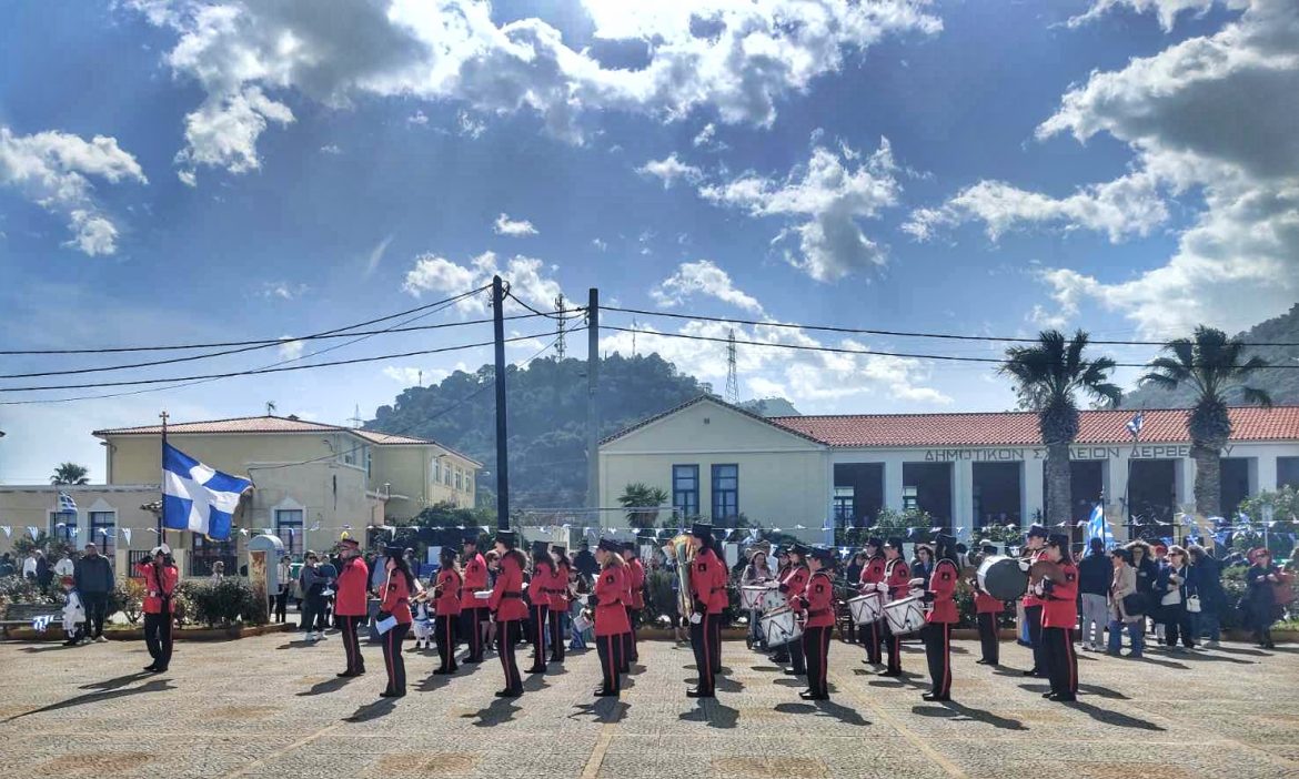 Κατά τη διάρκεια της παρέλασης η Δημοτική Φιλαρμονική Δερβενίου παιάνισε το πατριωτικό εμβατήριο “Αεροπόρος”.