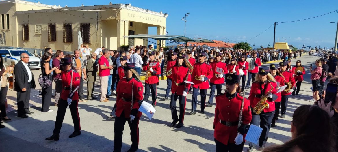 Κατά τη διάρκεια της παρέλασης η Δημοτική Φιλαρμονική Δερβενίου παιάνισε το πατριωτικό εμβατήριο “Κορόιδο Μουσολίνι – Μπράβο Κολονέλο” σκορπώντας ενθουσιασμό και ρίγη συγκίνησης στον κόσμο καταχειροκροτούμενη.
