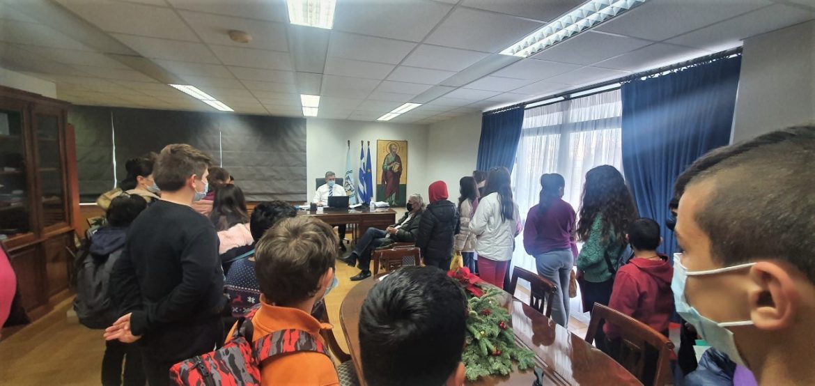Με την φράση αυτή και ένα πλατύ χαμόγελο υποδέχτηκε ο Δήμαρχος Κορινθίων στο γραφείο του πριν από λίγο τους μαθητές της Στ’1 και Στ’2 του 6ου δημοτικού σχολείου της Κορίνθου και τους δασκάλους τους.