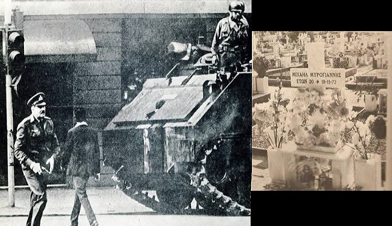 18 Νοέμβρη 1973, ο ταγματάρχης Ντερτιλής βρίσκεται με το υπηρεσιακό τζιπ έξω από την κατεστραμμένη πύλη του Πολυτεχνείου.