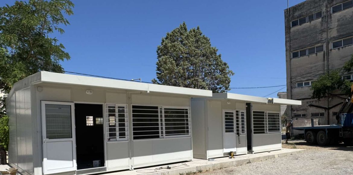 Πιο συγκεκριμένα, ολοκληρώθηκε η τοποθέτηση τριών αιθουσών στον προαύλιο χώρο του Εσπερινού Λυκείου Σπάρτης, όπου συστεγάζεται πλέον και το 1ο Γυμνάσιο.