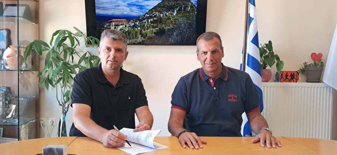 Στην υπογραφή σύμβασης για την υλοποίηση του έργου «Οδοποιία και Τεχνικά Έργα Δ.Ε. Μυστρά» προχώρησαν την Τετάρτη 17 Σεπτεμβρίου 2025 ο Δήμαρχος Σπάρτης, κ. Μιχάλης Βακαλόπουλος και ο εργολάβος κ. Αναστάσιος Κανελλάκης.